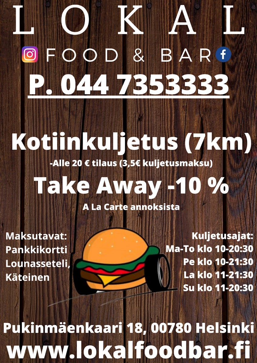 Welcome to Lokal Food & Bar, a hidden gem nestled in the heart of Helsinki at Pukinmaenkaari 18. This vibrant eatery has quickly made a name for itself, drawing in locals and visitors alike with its inviting atmosphere and hearty menu offerings.
